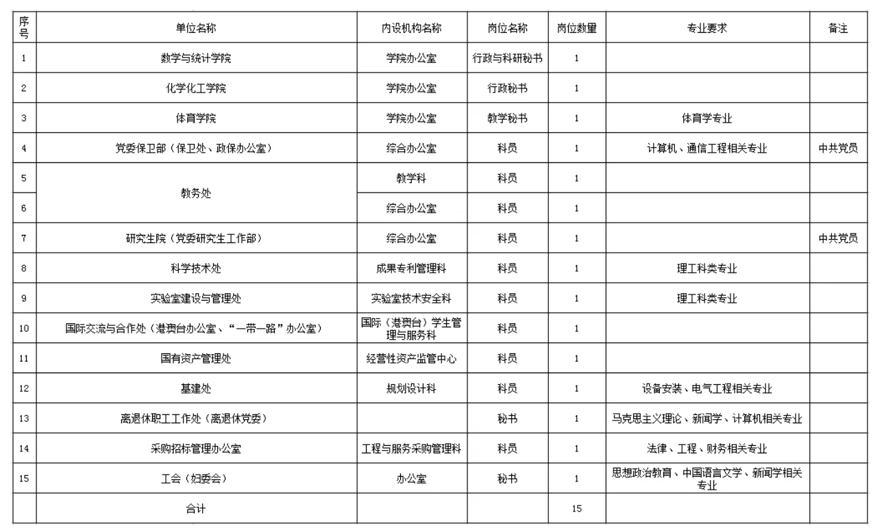 2.合同聘用每个岗位通过资格审核并参加考核的应聘人员不受人数限制,各用人单位根据招聘条件开展审核工作。