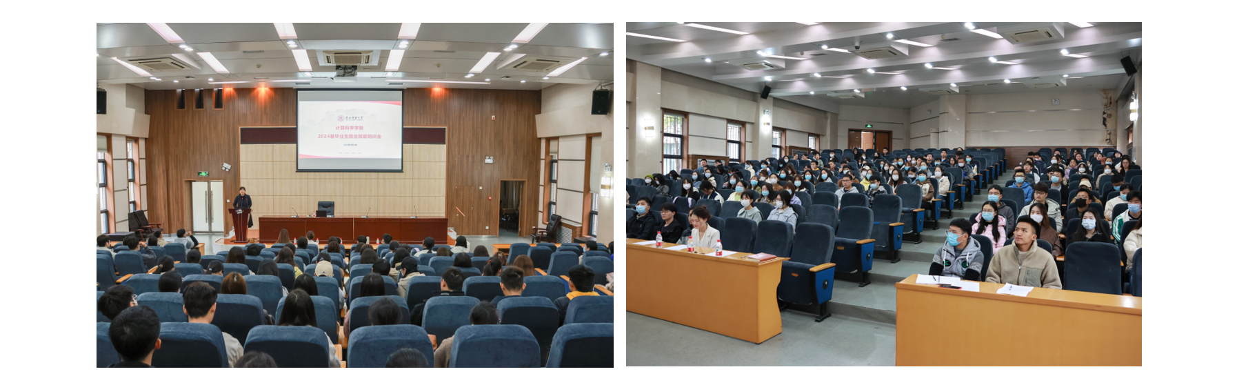 在文澜楼B段一层会议厅召开2024届毕业生就业赋能培训会。乔布简历特聘师郑圆圆、研究生辅导员袁珂月、研究生兼职辅导员刘柱、2023届研究生张文博、李彦文及学院全体2024届研究生毕业生、部分本科生参加会议。会议由学院党委副书记郭康凌主持。