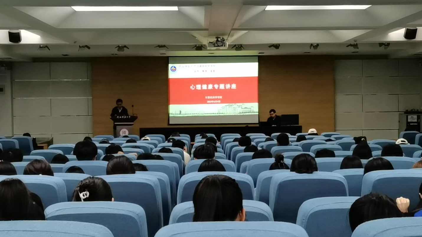 组织2022级本科生在雁塔校区崇鋈楼学思堂进行心理健康专题辅导。心理学院陈煦海教授辅导授课,2022级全体本科生参加,辅导员田海东主持活动。