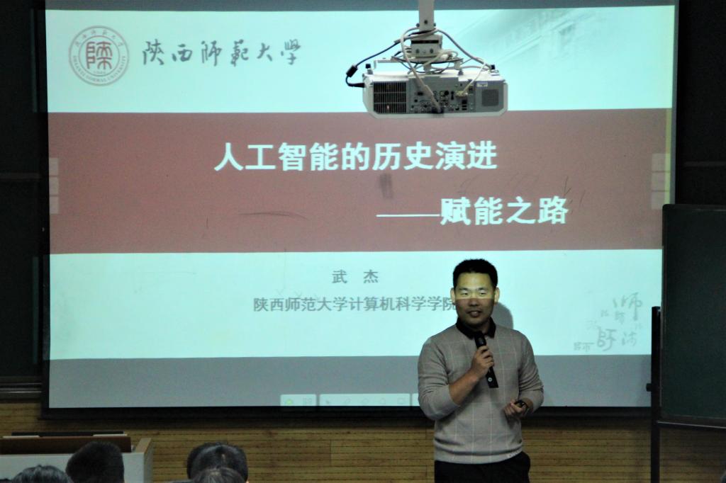 人工智能专业负责人武杰老师和计算机科学与技术专业负责人王亮老师主讲。讲座的题目为《人工智能的历史演进——赋能之路》和《大学生创新创业交流讨论会》。91猫先生