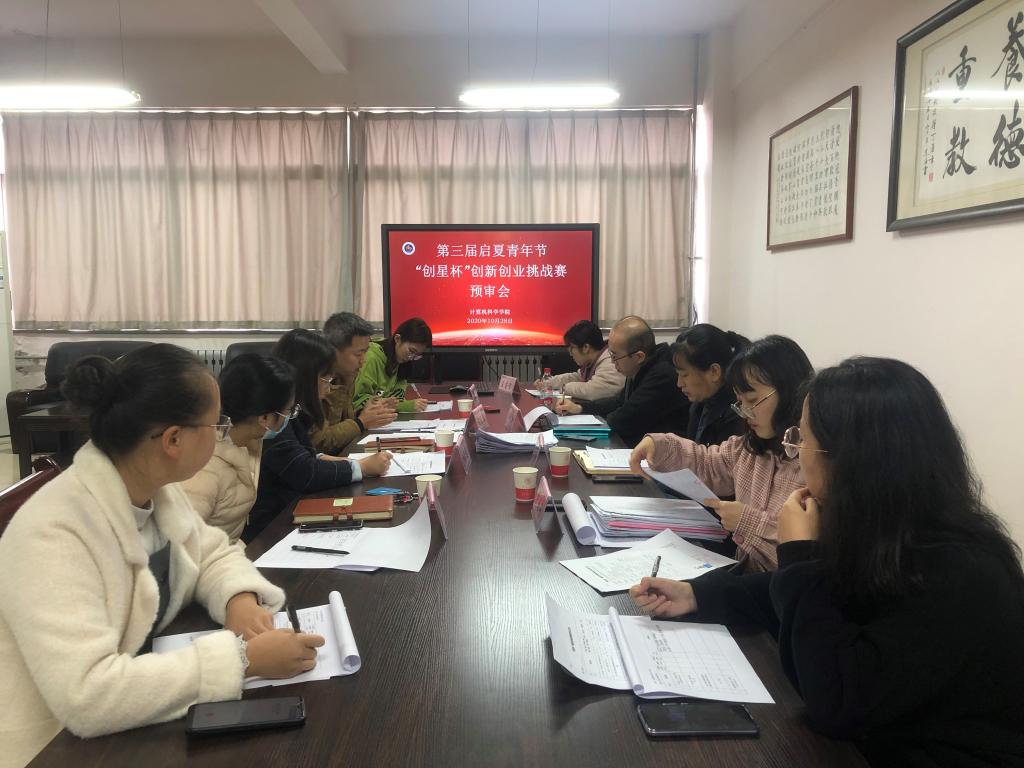 第三届启夏青年节“创星杯”创新创业挑战赛预审会。学院党委副书记袁冰,教师张汇泉、任杰,辅导员安琪及计算机科学协会、学生会相关同学参加会议。会议由学院团委书记郭康凌主持。