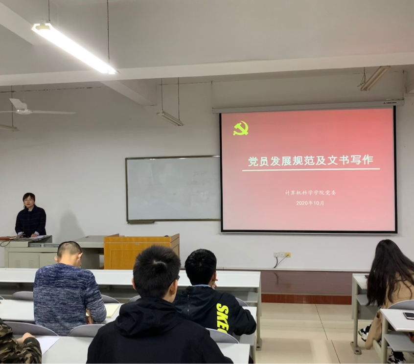 郭康凌首先介绍了《中国共产党发展党员工作细则》的大致内容,她谈到,《细则》体现了党要管党、从严治党的方针,是全国做好新形势下发展党员工作的重要遵循。接着,她从出台背景、特点、发展过程三个方面介绍了《陕西省发展党员工作规程》的详细内容,从申请入党、入党积极分子的确定与培养教育、发展对象的确定与考察、预备党员的接收、预备党员的教育、考察与转正五个阶段入手,使同学们深入了解了各个阶段的注意事项。她还就入党申请书、思想汇报、积极分子考察登记表等相关文书的写作进行了详细指导与说明。郭老师表示,希望入党积极分子坚定共产主义和中国特色社会主义理想信念,继续提升思想觉悟,自觉践行社会主义核心价值观,力争在思想上、组织上早日加入党组织。