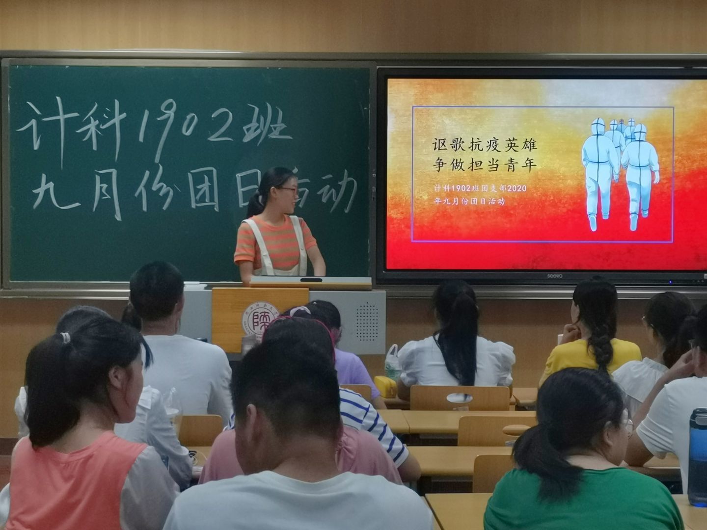2019级计算机科学与技术2班团支部在文渊楼1305教室开展了“讴歌抗疫英雄,争做担当青年”的主题团日活动。此次活动由团支书周舒桐主持,班级全体成员积极参与。