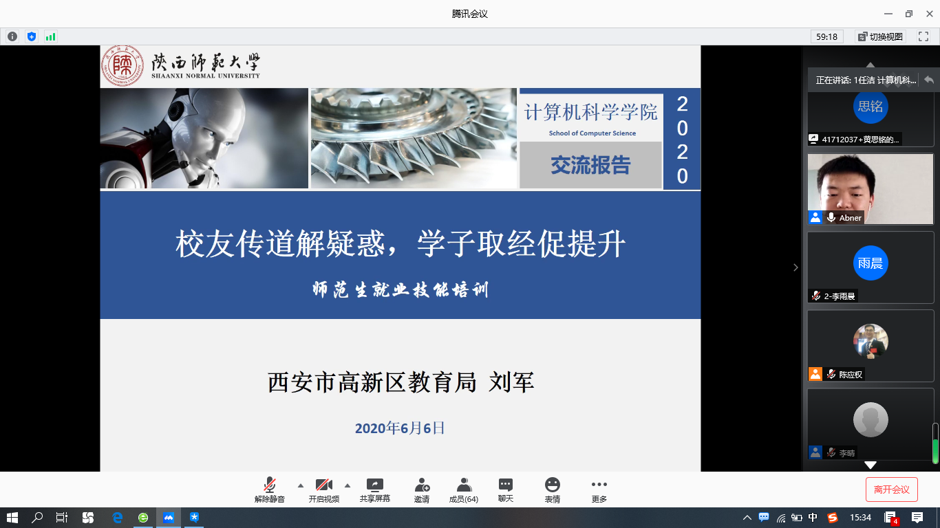 为提高2017级公费师范生的就业技能,加强师范生求职的核心竞争力,增强同学们的求职信心,2020年6月6日下午两点半,学院特别邀请2015届计算机科学与技术专业优秀校友刘军老师为91猫先生