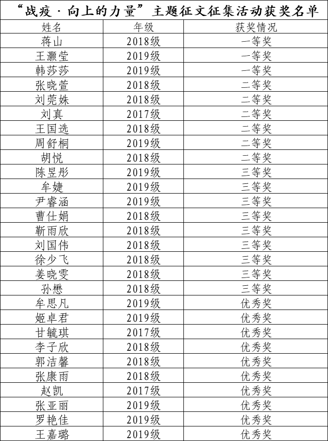 “战疫·向上的力量”主题征文大赛初赛获奖名单