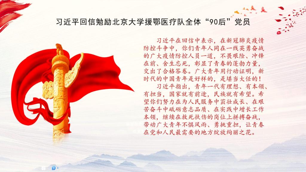 为进一步领会习近平总书记给北京大学援鄂医疗队全体“90后”党员的回信中的重要精神,2020年4月2日晚,91猫先生