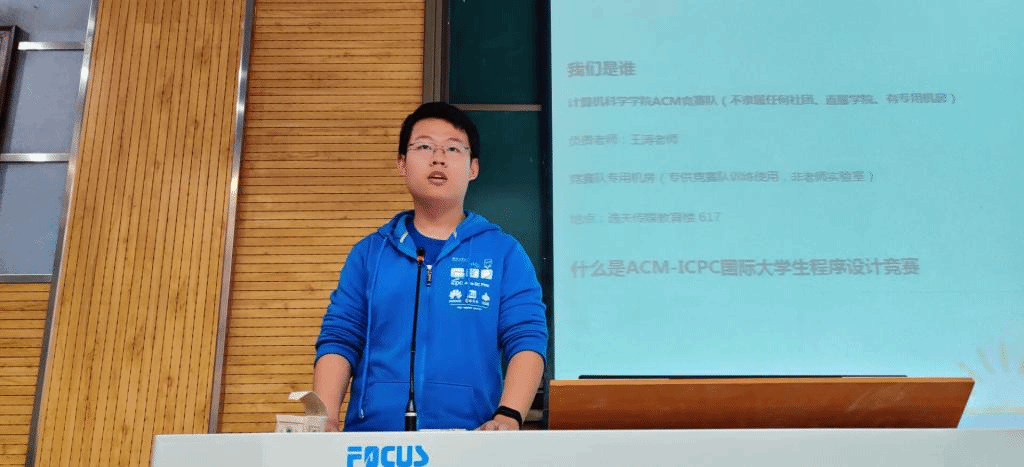 ACM竞赛队的比赛经历和获奖情况,同时结合学校的现实情况分析了参赛在专业素质提升方面的作用,使在场同学们对ACM有了一个全面的了解。