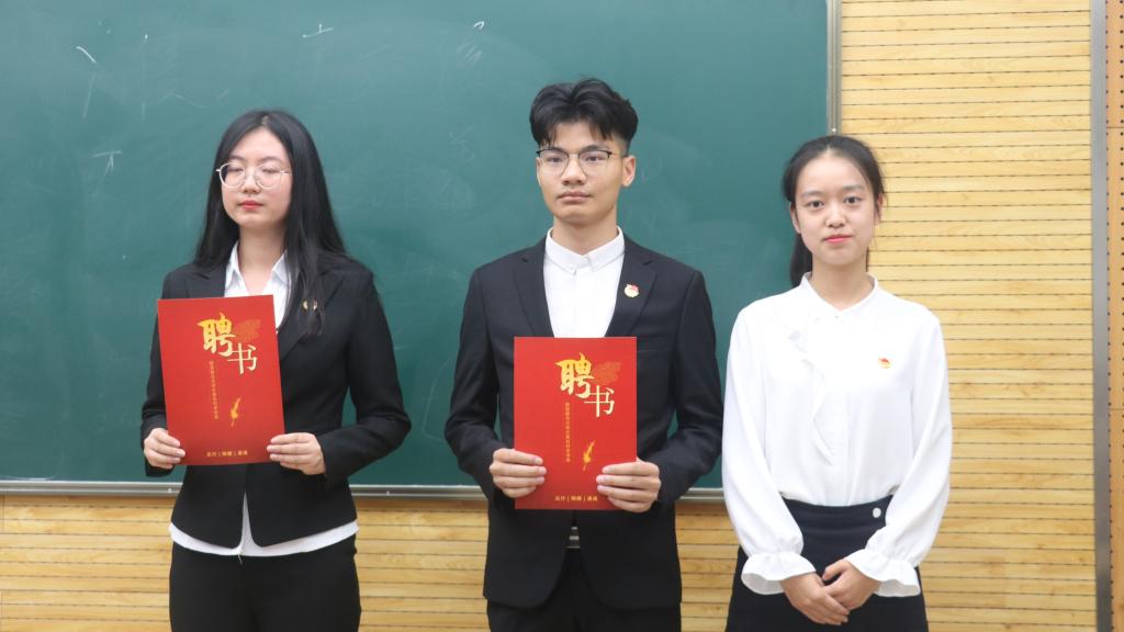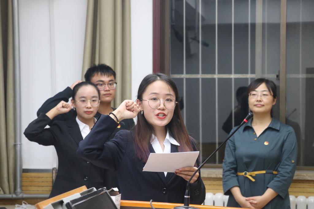 发展增添力量的决心。与会嘉宾还为新一任学生干部颁发了聘书。新一届学生会主席王越带领全体学生干部进行了宣誓。