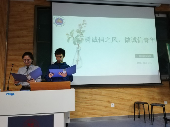 最后是计科一班和计科二班同学带来的诗朗诵,将本次班会推向了高潮。通过本次班会,同学们进一步增强了诚信意识,有助于树立诚信之风,将诚信融入到生活中每一件事中,做诚信青年。