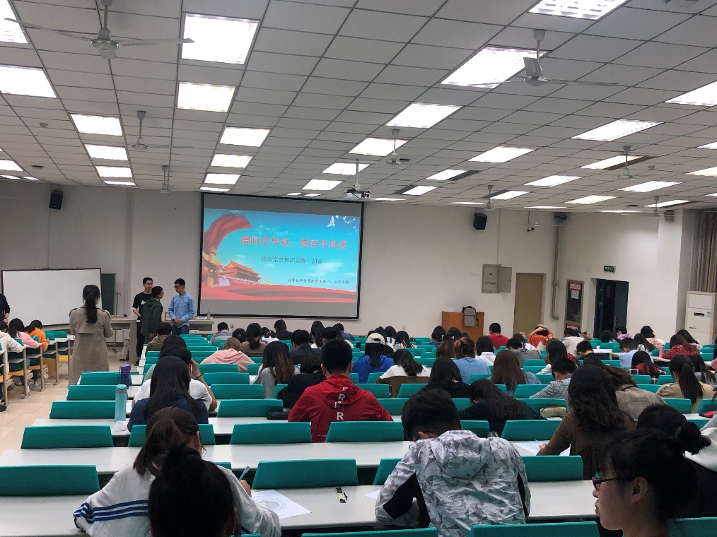 学生第一、第二党支部于文津楼4101教室顺利举行党章党史知识竞赛初赛,比赛以试题竞答的方式展开。学院本科生共有30支参赛小组,约150余人参与了本次活动。