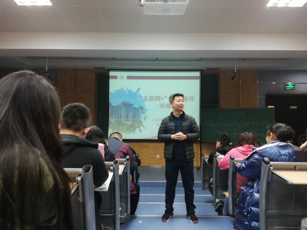 2018级于3月10日19:00在5104教室举办“互联网+”专题指导讲座,讲座由学院张汇泉老师主讲,辅导员安琪和2018级全体学生参加此次讲座。