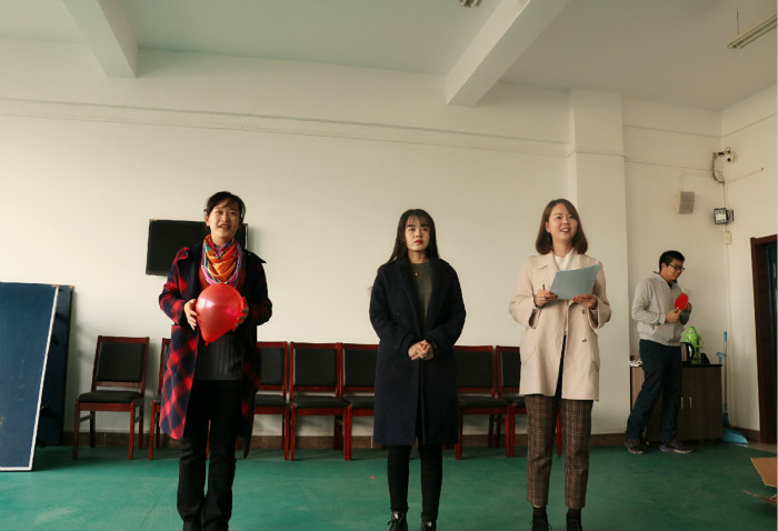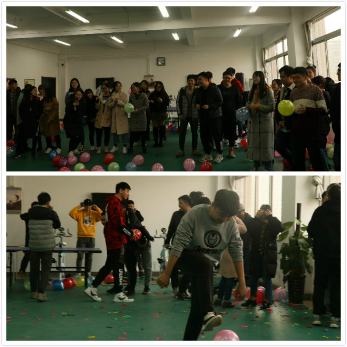 袁冰老师首先对考研同学努力的态度表示充分的肯定,接着对考研同学表达了关心及鼓励。她提到在最后的冲刺阶段,同学们一定要一鼓作气,但是在努力的同时还要注意身体,劳逸结合,并且要注意自习室卫生情况,做到每日清扫,早晚通风,以良好的身体状态和积极向上的心态应对考试。随后,第一个减压小游戏“逢7过”在三位老师的组织带领下开始进行,经过一轮轮的角逐,最终由淘汰者们的即兴表演收尾。紧接着迎来了此次活动同学们最期待的一个小游戏,那就是“踩气球”,一个个五颜六色的气球仿佛考研路上遇到的种种难题,踩碎气球如同攻克难点,踩碎气球之决心也如同同学们考研必胜之决心,很快300个气球就在同学们的欢声笑语中被各个击破。