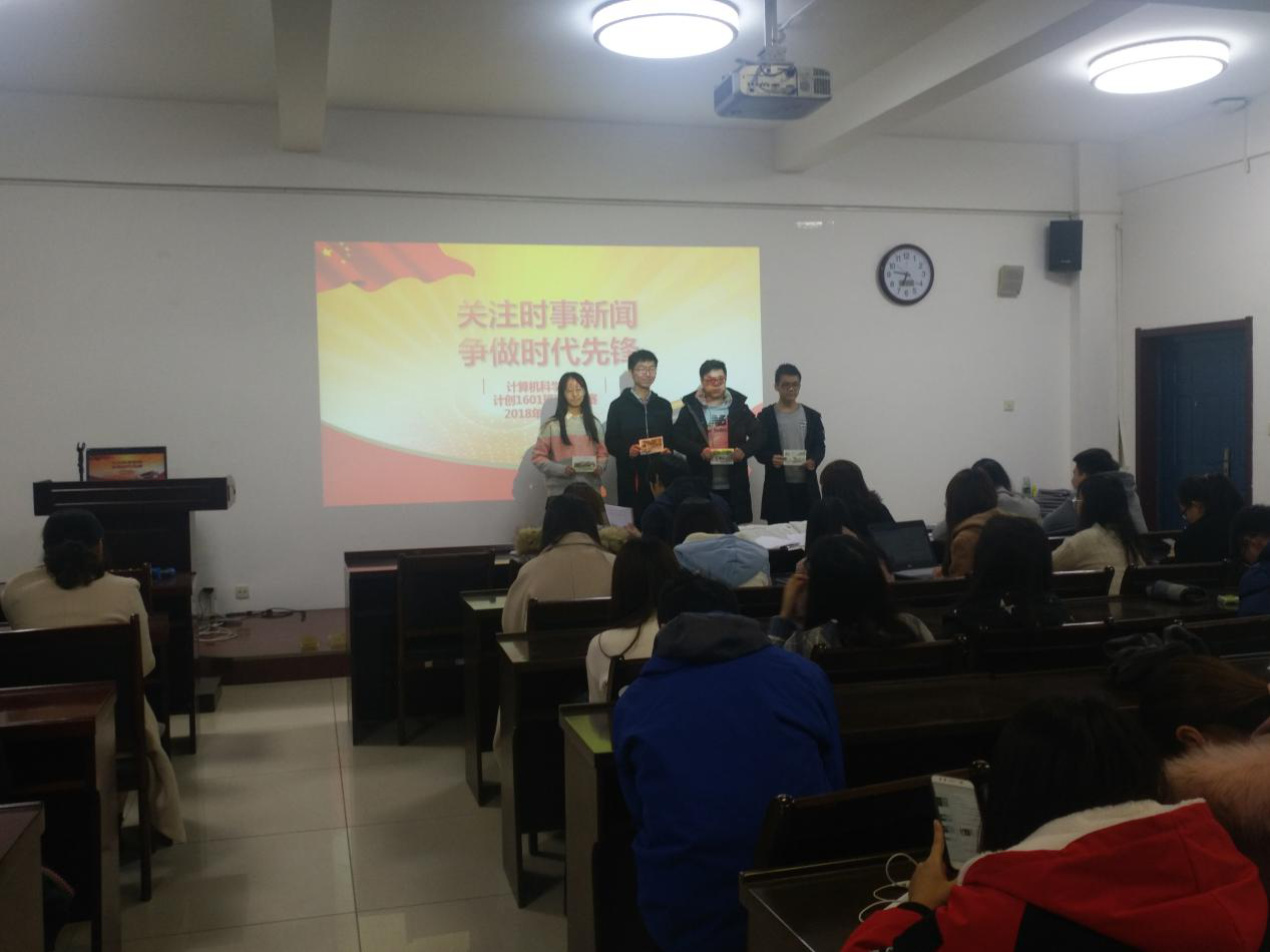 2016级计创班组织的团日活动“关注时事新闻,争做时代先锋”在长安校区文津楼学院报告厅成功举办。辅导员郭康凌主持了此活动,2016级计创班全体学生参加了该活动。