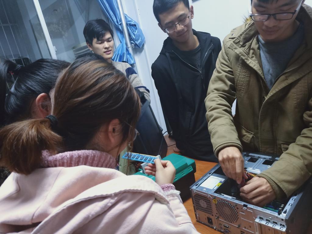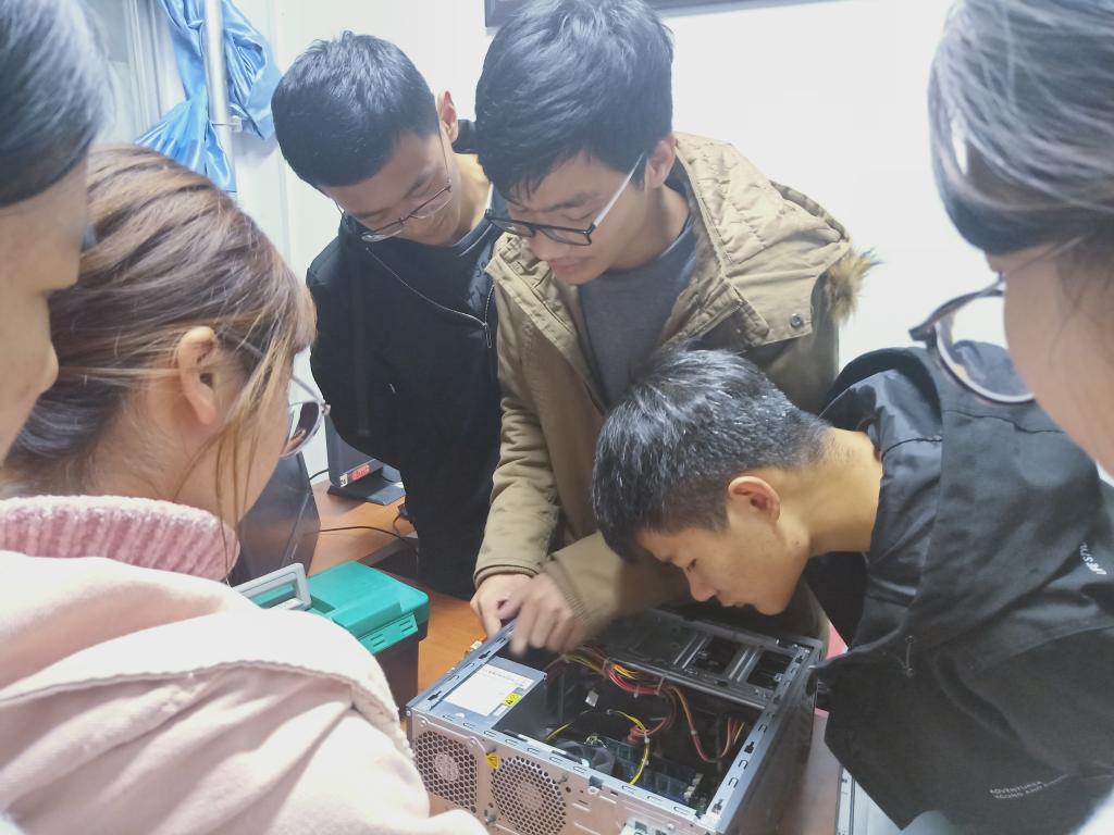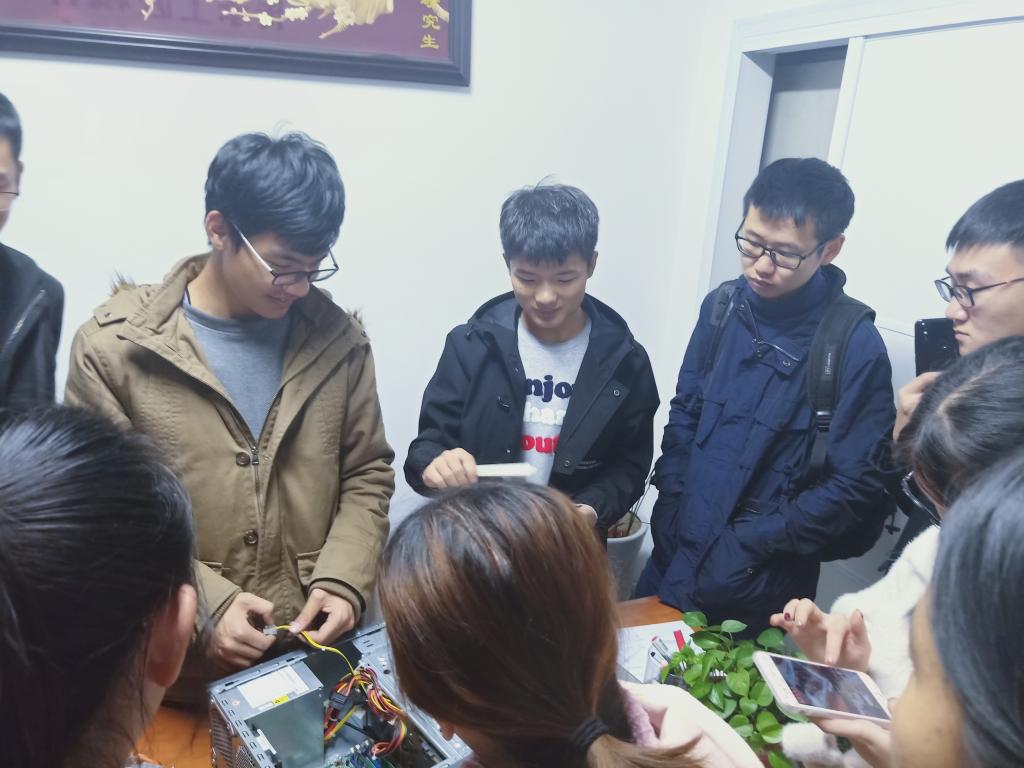 会后,蓝精灵副队长卢臻玄为队员们演示了拆机的步骤与方法,带领大家进一步熟悉计算机组成部件以及拆机过程中常见问题的解决办法,包括磁盘的工作原理、硬盘的分类与区别方法、判断硬件损坏部位的方法、维修时的注意事项。队员们认真地传递内存条、硬盘、显卡进行观察,分享自己在之前的学习中掌握的知识技能,并提出自己的疑问,队长和副队长耐心地回答并进行知识补充。此次学习让队员们在实践中强化了对理论知识的理解,增强了集体凝聚力,也是对新型例会模式的积极探索。