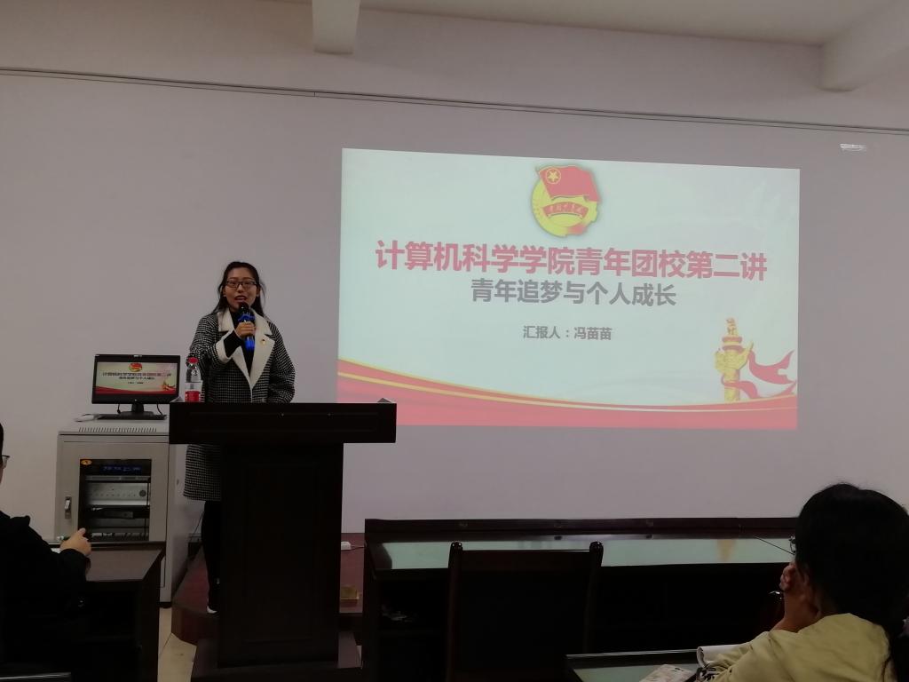 团委副书记、2016级计算机科学与技术专业冯苗苗、2016级计创专业马俊虎同学做《青年追梦与个人成长》的主题讲授。马俊虎分享了学习习近平总书记“7.2”重要讲话精神的体会,从党旗所指就是团旗所向、引领青年成为时代新人、保持清风正气良好形象三个方向展开授课,鼓励同学们要努力掌握专业本领,提高自身素质;他强调,要去“四化”强“三性”,青年一代要毫不犹豫坚持党的领导,坚定不移走中国特色社会主义群团发展道路。冯苗苗主要从团史、团的基本知识、团务工作、如何做一名合格的团干部四个方面入手,详细地介绍了团的性质、入团条件、离团、团籍的保留、团的全国代表大会等基本知识,分享了做一名合格的团干部的经验,要坚定理想信念、心系广大青年、提高工作能力、锻炼优良作风。
