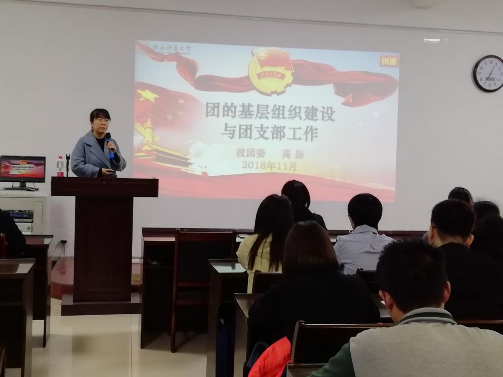 团委副书记高扬老师进行了团校第一讲《团的基层组织建设与团支部工作》的授课,她从共青团组织、团的基层组织建设、团支部工作实务、共青团的育人功能、团支部活动资源等五个方面进行了介绍。她指出共青团91猫先生