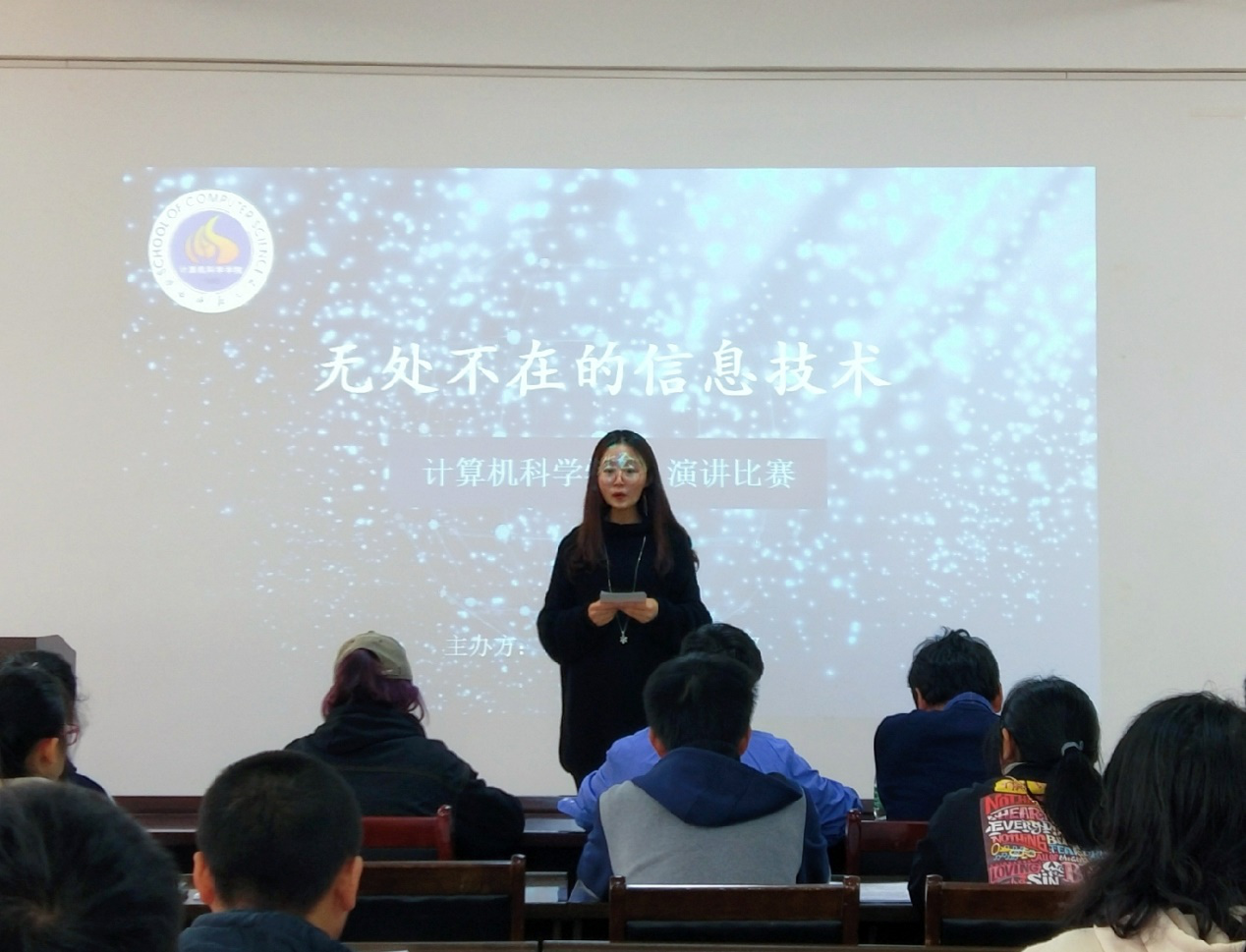 报告厅举办“无处不在的信息技术”主题演讲比赛。本次活动由院学生会学习部组织。学院辅导员郭康凌、毛庆、陈应权老师出席比赛并担任评委,同时还邀请了六位学生大众评审。比赛由2017级学生王越主持。