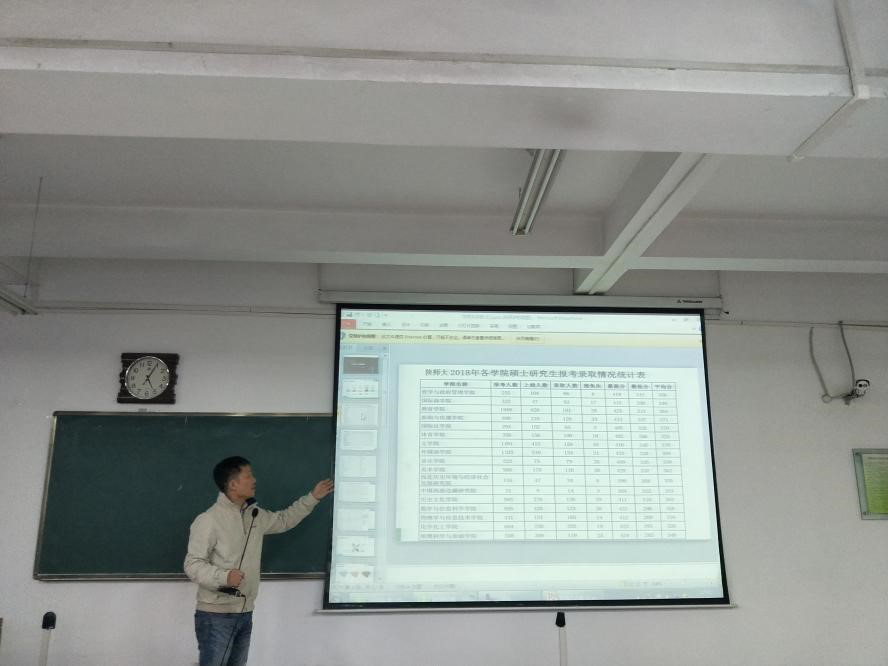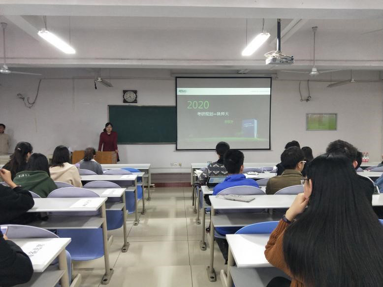 郭康凌介绍了前期统计的学院2016级非师范生的就业选择情况,强调了考研规划的重要性,目标是前进的动力,只有提前做好考研计划安排,才能有规划、高效与系统地进行复习。
