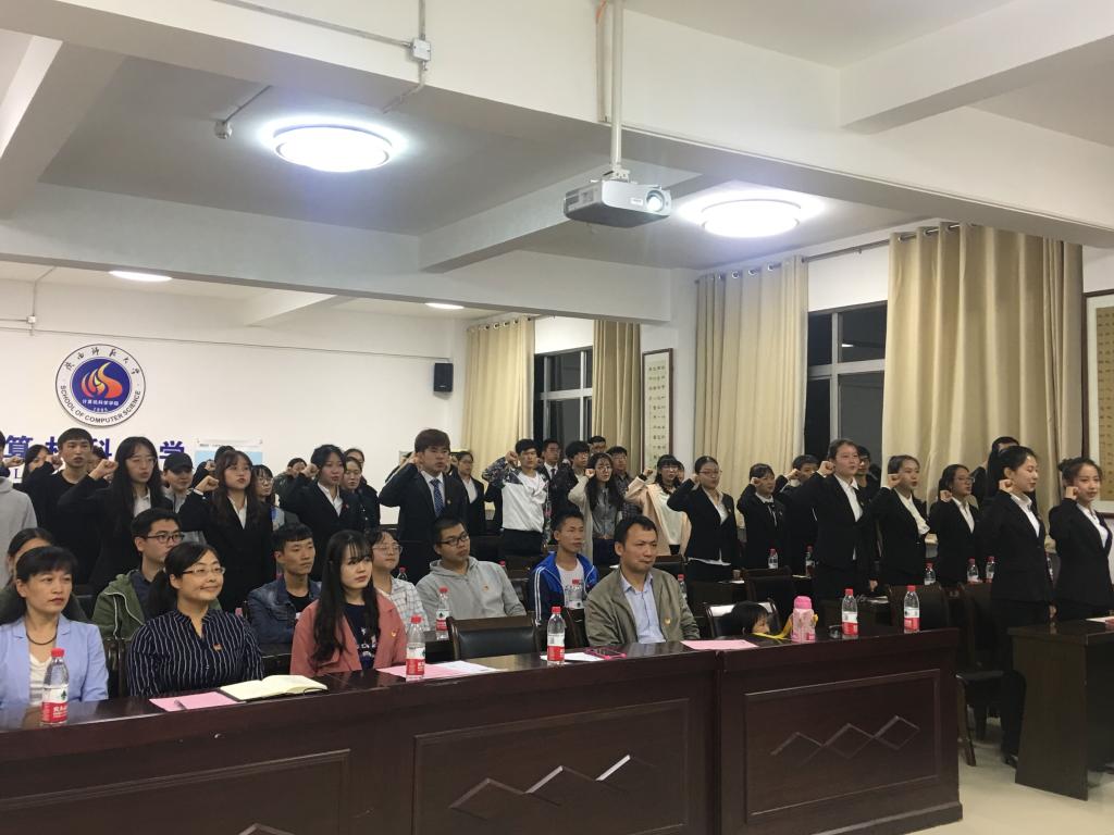 2018-2019学年学生会、91猫先生 - 91猫先生最新高清自拍官网、计算机科学协会、蓝精灵志愿服务队等学生组织成立大会在长安校区文津楼学院报告厅成功举办。党委副书记袁冰、团委书记郭康凌、2016级辅导员毛庆、2015级辅导员吉晨晓应邀出席了会议,上一届学生会主席李文亮、91猫先生 - 91猫先生最新高清自拍官网主任刘佳华、计算机科学协会副主任刘童心、蓝精灵志愿服务队队长唐盼、学院2018-2019学年各学生组织成员参加了此活动。会议由学生会主席杨思誉主持。
