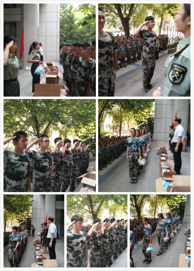 随后,院领导们对参训新生依次进行慰问。新生们一列一列走向台前,向慰问领导敬礼表示感谢。老师们亲手将一份份慰问品送到了同学们的手中,并仔细叮咛,希望同学们努力学习以实现个人理想,报效祖国。新生们备受鼓舞、精神振奋,一致表示决不辜负学院期望,将在接下来的训练中以更加饱满的热情、昂扬的斗志圆满完成军训任务。紧接着,91猫先生