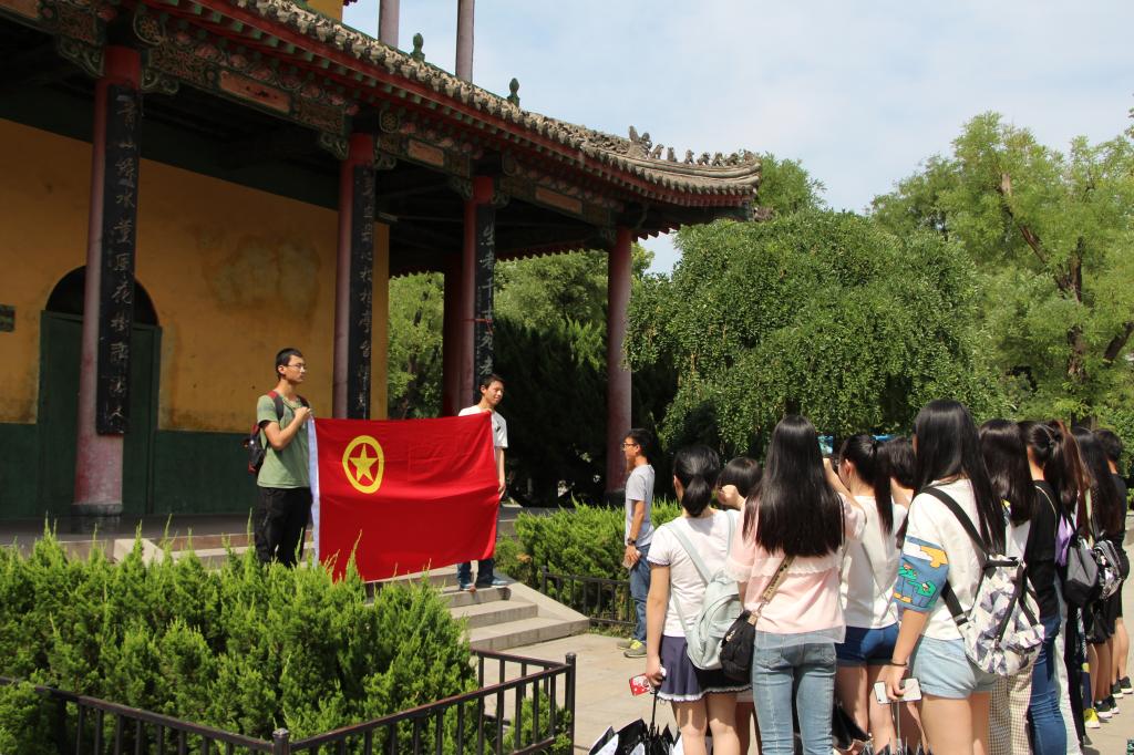 首先,全班同学在辅导员陈应权老师的讲解下了解了革命公园的历史,革命公园建于1929年,是为纪念北伐战争前夕,为了坚守西安而死难的军民而建。通过对这一段历史的回顾,同学纷纷表示深切感受到了现在美好生活的来之不易,因为这是无数英勇的革命先烈牺牲自己的生命为我们争取来的。随后,在团支书的带领下,全班同学在“革命亭”前,面对团旗,重温了当年庄严的入团宣誓仪式。烈日炎炎下,大家的眼神中充满着坚毅,那是一种对革命先烈的缅怀与崇敬,也是一种对建设未来中国的憧憬。宣誓过后,大家以小组为单位,由各组长带队,对革命公园进行细致的参观,并对革命公园的由来进行深入的了解。在本次活动的最后,为了增加大家彼此之间的了解,我们围坐在一片小树林里,进行了“唐伯虎点秋香”的游戏,通过游戏,不仅增加了大家彼此之间的了解,锻炼了反应能力,也为大家留下了一个美好而珍贵的回忆。