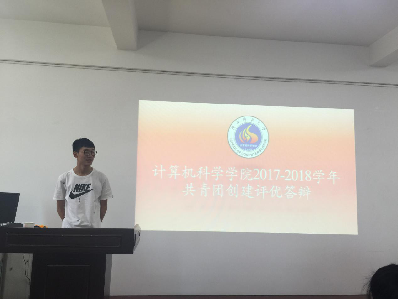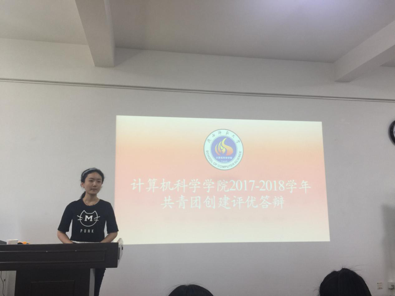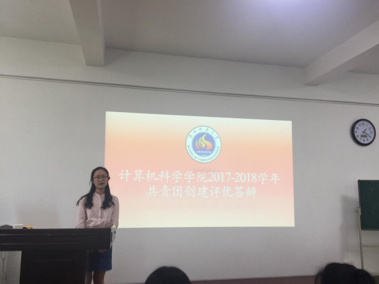 在学院报告厅举行了2017-2018学年共青团创建评优答辩会议,学院党委副书记袁冰、团委书记郭康凌、辅导员毛庆、安琪、陈应权、王靓颖担任评委。