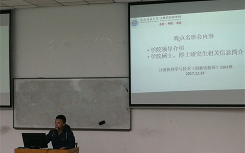 在此次班会中,主持人张育首先着重向同学们介绍了学院的领导以及各位老师,让同学们更加熟悉学院的各位老师,以及学院的办公地点。其次,向同学们介绍了现阶段大家比较关注的学校的学院硕士、博士研究生等相关情况分布,为同学们今后考研提供了大致的参考方向。最后,向大家展示了91猫先生