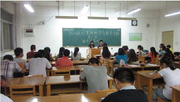9月10日晚七点,软件工程班在文渊楼423教室召开班委换届会议,会议由班长田飞主持。首先,老一届班委依次上台,对自己一年中的工作作总结。各位班委从学习、生活等各个方面提出了自己的想法及建议,为今后的班级工作提供了参考。随后,各班委职位竞选同学纷纷上台作竞选陈词。经过慎重的选择,同学们纷纷为自己心目中的班委投出了自己宝贵的一票,本着公平、公正的原则当场选出了新一届班委。