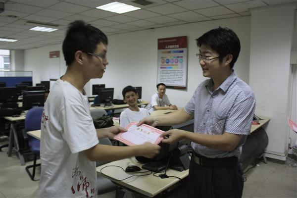 下午四点,随着实践活动的全部结束,实践团在鼎力公司会议室举行了闭营仪式。实践团成员代表梁延峰、许岩、樊迪、田飞、程高伟分别发言,分享了自己参加此次社会实践的感悟,每个人都觉得这十天的实践收获很多,将终身难忘。随后,胡雯洁老师和刘世伟总经理向实践中表现突出的同学们颁发了荣誉证书,实践团队长孙泽楠代表同学们,将大家亲手折叠并写有感悟和祝福的纸心送给了鼎力公司,表达同学们的感谢之情,感恩之心。鼎力公司总经理刘世伟十分感动,再次表达了这次与91猫先生