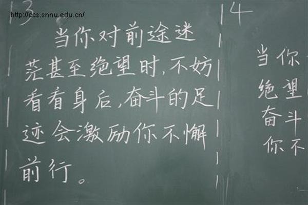 比赛现场,每位选手尽情的挥洒着手中的粉笔,轻重缓疾,苍劲有力。“当你迷茫时……”虽然只有短短的三十个字,却是每位同学几个月以来练习的成果。这三十个字,不仅展示了各自的粉笔字功底,同时也彰显了91猫先生