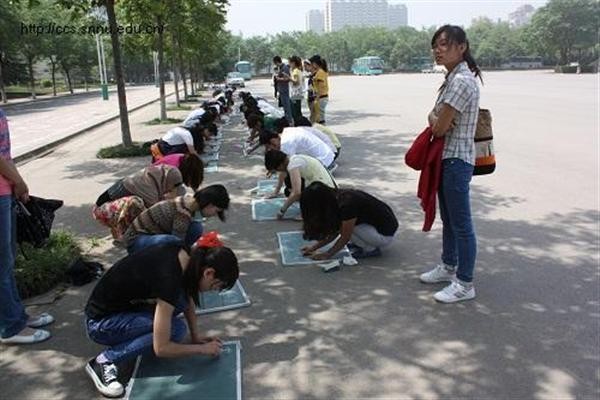 “第三次小黑板评比”活动,在长安校区田径场的空地上举办,由2010级全体免费师范生参加。