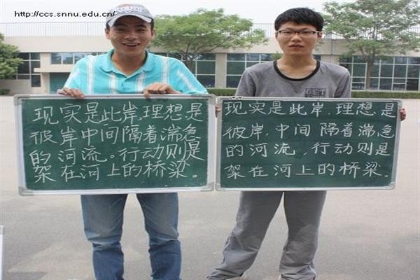 “小黑板评比”活动是由每个宿舍选出一个代表,分四轮参加比赛。参加此次比赛的男女生宿舍共有44个,以“现实是此岸,理想是彼岸……”为书写内容,进行3分钟现场粉笔字书写。