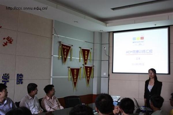 胡雯洁老师首先向同学们介绍了出席本次会议的嘉宾,接着,她对从程序设计大赛中脱颖而出的各ACM大赛成员表示了祝贺。随后ACM大赛指导老师王涛就ACM竞赛训练做了精彩的汇报。汇报介绍了ACM大赛的赛制以及选拔形式,给大家展现了集训团队的目标。之后介绍了集训队伍成员结构,以及近期的训练情况,最后,王涛老师详细介绍了近期参赛计划和目标。