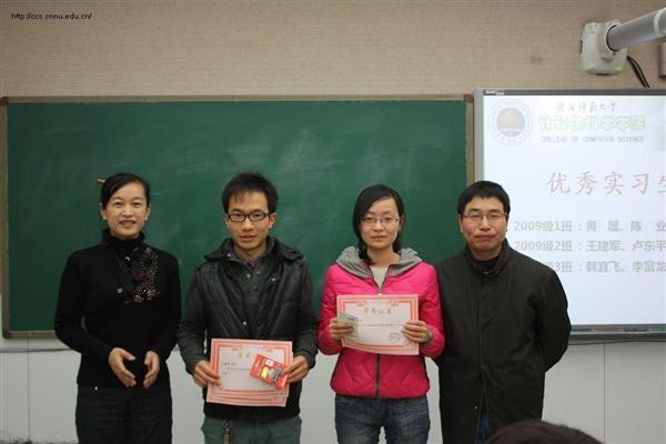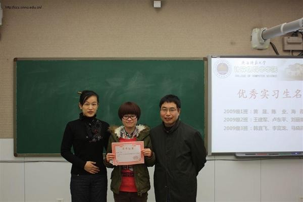 优秀实习生名单,并与袁冰老师一起为获奖学生颁发了奖状及奖品,大会在大家热烈的掌声中落下帷幕。