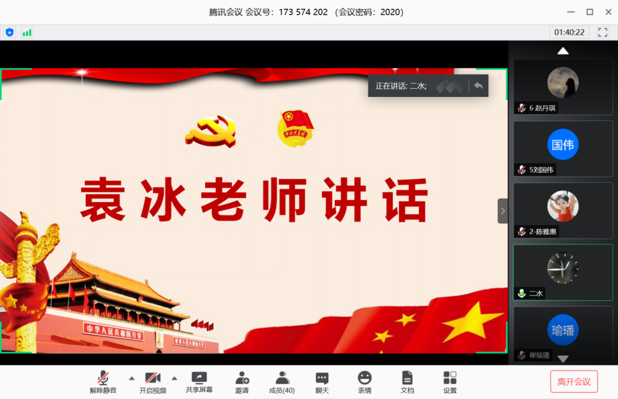 袁冰指出这是一个学习和锻炼的过程,同学们可以在过程中不断学习,共同进步,同时强调同学们应该以身作则,做好模范引领示范作用,努力成为社会主义的合格建设者和可靠接班人,争做担当民族复兴大任的时代新人。郭康凌希望同学们以这次比赛为契机,学习新思想,一起学习理论强国,一起战疫到底。