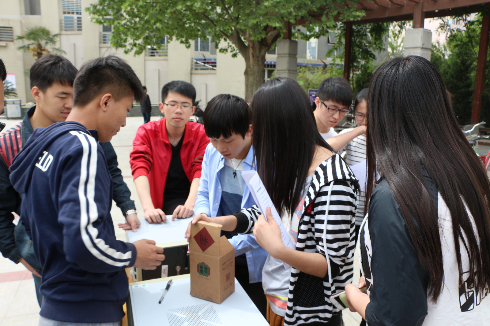 拆装机比赛于十点正式开始。主持人宣读比赛规则,并由裁判长陈卓示范拆主机的最终标准与装完主机后停止计时时的标准。本次比赛不仅仅有计算机专业的同学参加比赛,也吸引了不少非计算机专业的同学前来参加。其中生物科学学院的三位男同学,与工作人员进行互动,针对主机内的构成和各个部件的型号以及用途进行了深刻地探讨。同学们对主机表现出的浓厚兴趣,也激发了工作人员的斗志,工作人员也因此感到欣慰。拆装主机环节紧张刺激,选手们各显神通,力争在最短的时间内把眼前的主机重组。阳光炽热,选手们的内心更为火热,上错了螺丝,忘了摘光驱,一边极力抑制紧张颤抖的双手,一边要赶超隔壁对手的进度;趣味问答环节也是妙趣横生,选手们兴致盎然。盒子内共有8个乒乓球,其中5个写有题型类别的相应数字,其他三个为空球,抽到空球则没有答题机会,拆装机完成的选手可以不放回的抽取乒乓球五次。从知道自己是否抽取到空气到答题,从答题到得知苦思不得解的答案,原来如此的表情益于言表。直到看到最终成绩记录,选手们终于让悬着的心落地。下午两点,本次拆装机比赛圆满结束。最终,2013级软件工程二班的李鹏同学以9分32秒的最终成绩夺得第一名,第二名为2013级计算机科学与技术专业的刘文华同学,用时12分01秒,第三名为2014级软件工程一班的任仰同学,用时13分49秒。