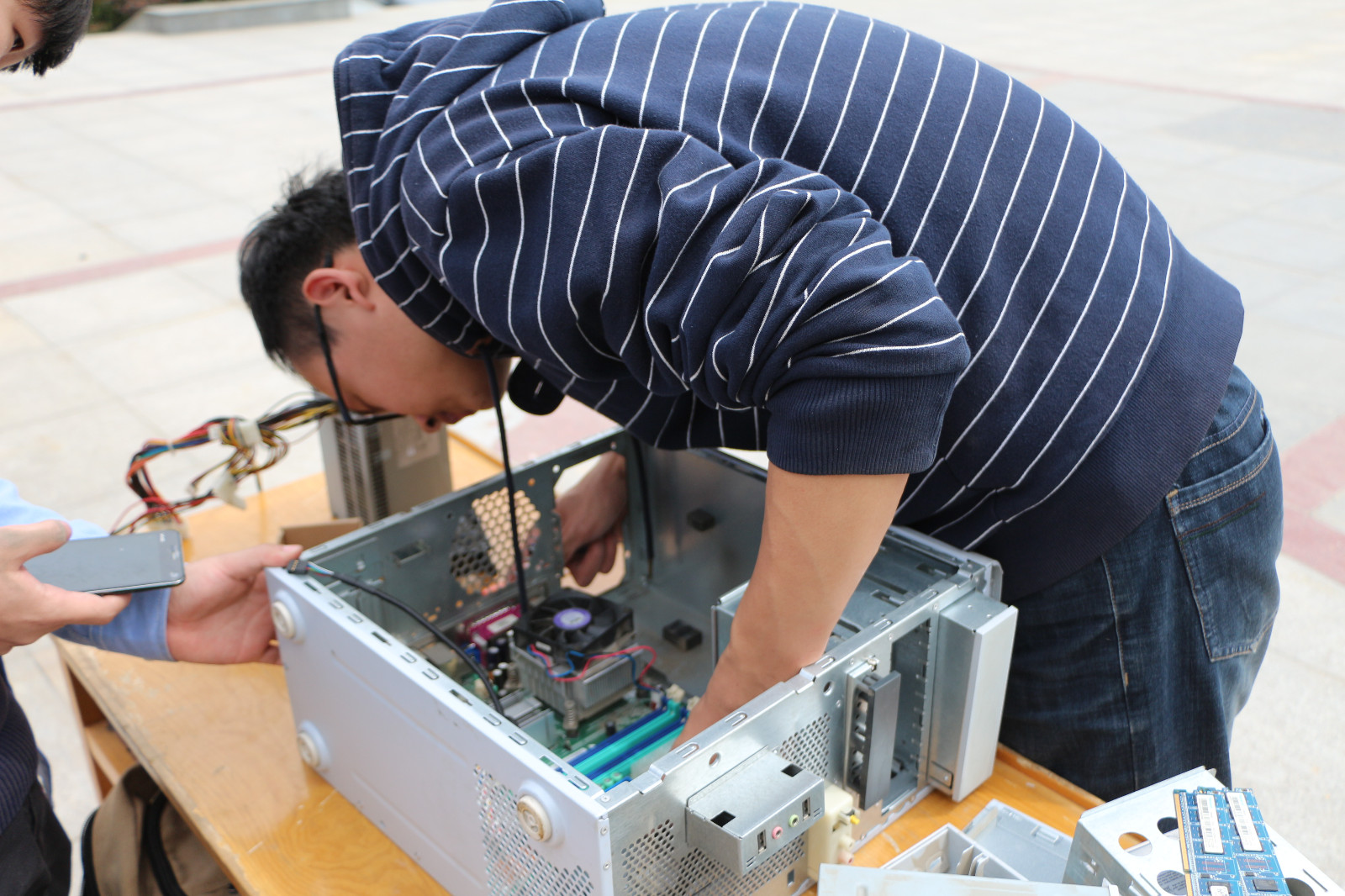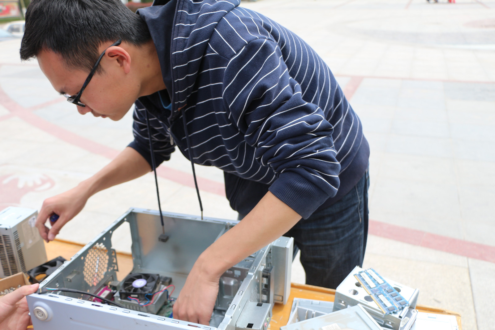 417日上午,由计算机科学协会举办的第二届电脑全能王大赛之拆装机比赛,在阳光苑广场顺利举办。电脑全能王大赛分为四个部分的比赛:PS比赛,编程比赛,PPT比赛以及拆装机比赛。作为此次全能王大赛的“重头戏”—拆装机比赛,旨在对电脑主机的实际拆装的情况下提高参赛选手对电脑主机内部构造的理解程度,激发选手兴趣,提高选手们的动手实践能力。