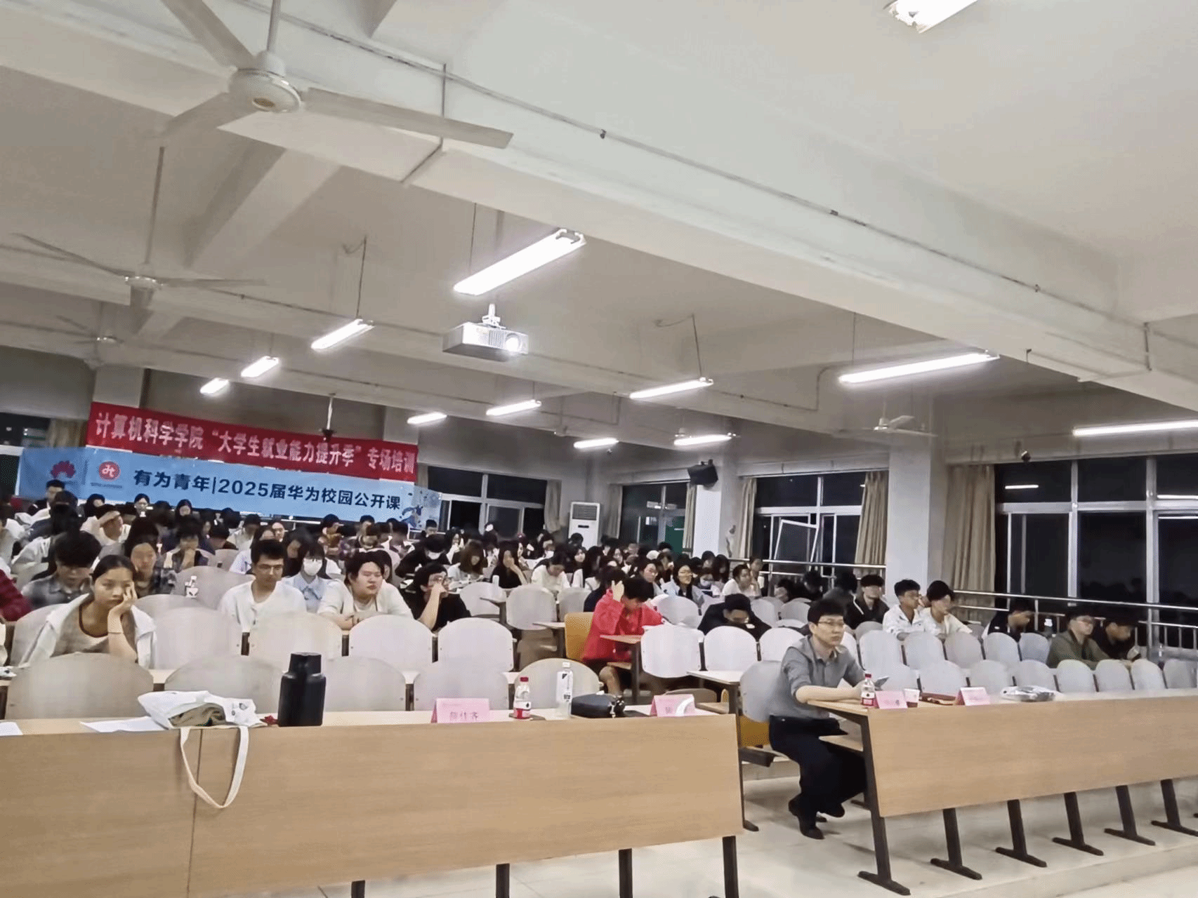 在文津楼3223教室组织2026届毕业生开展名企进学院就业讲座活动。华为技术有限公司陕西教育行业总监闫占威、中国终端服务部招聘经理陆琳、学院党委副书记郭康凌、2026届毕业生参加,辅导员田海东主持。