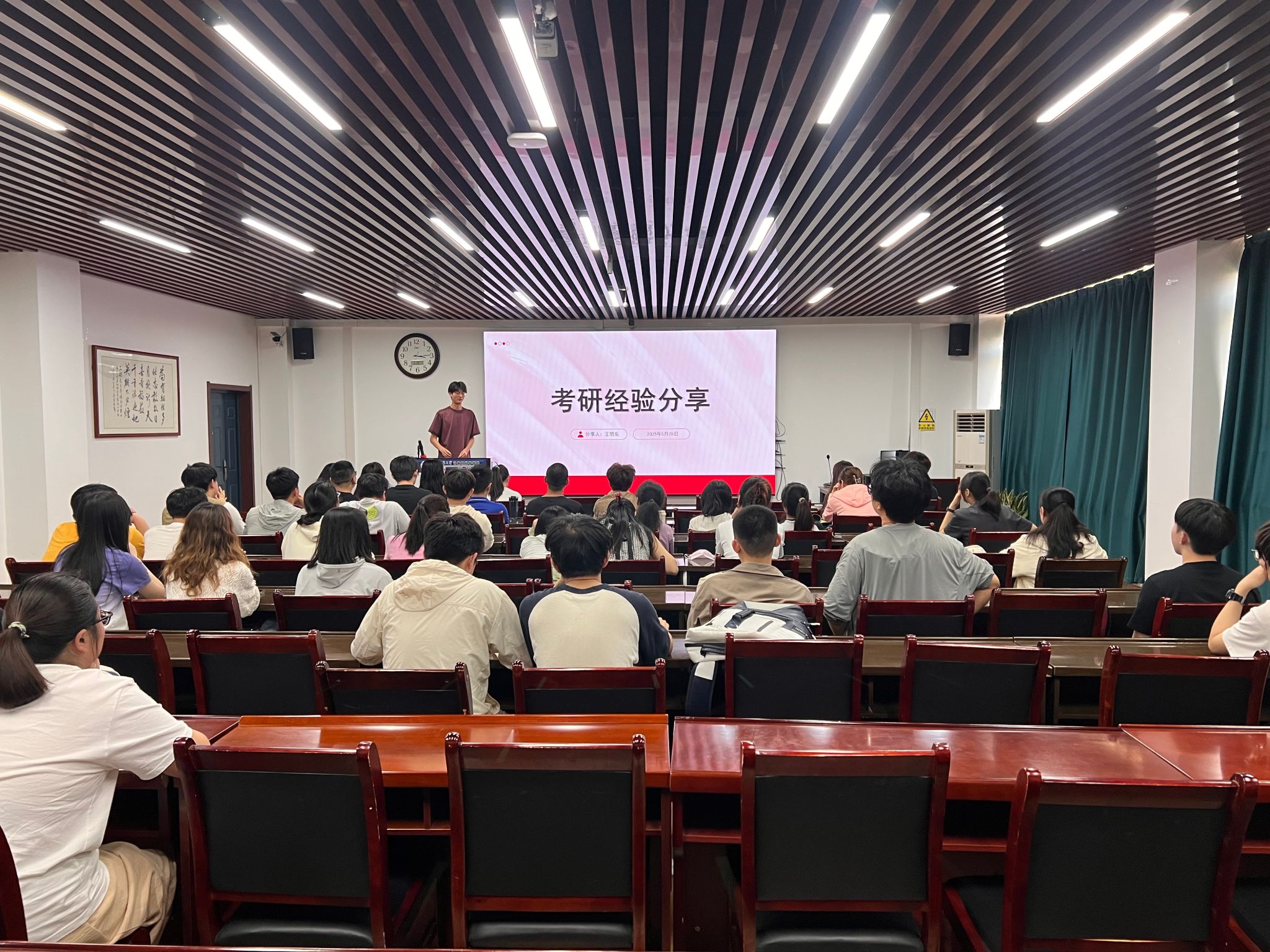 在文津楼3425报告厅组织2025届优秀学生考研经验分享交流活动。2025届考研学生代表、2026届毕业生参加,辅导员田海东主持。