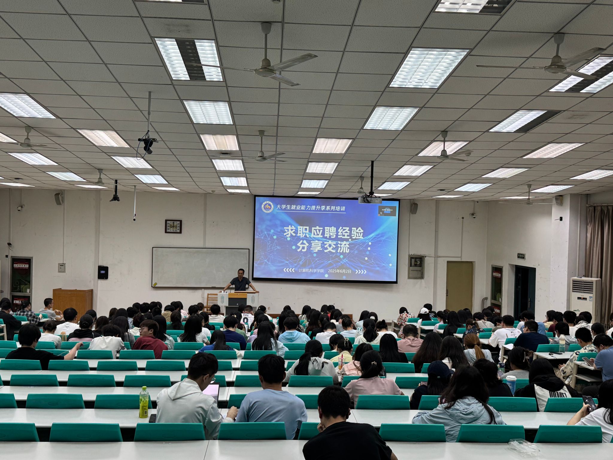 在文津楼4201教室组织2025届优秀学生求职经验分享交流活动。2025届优秀学生代表、2026届毕业生参加,辅导员田海东主持。