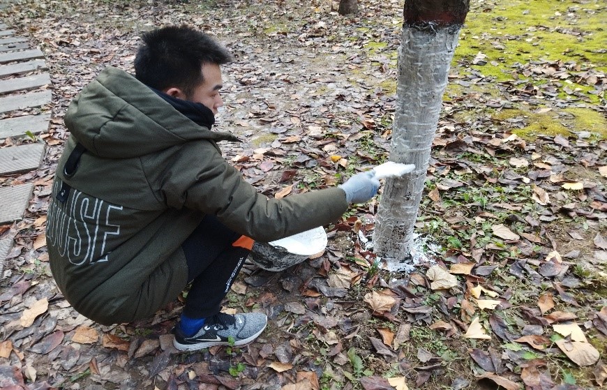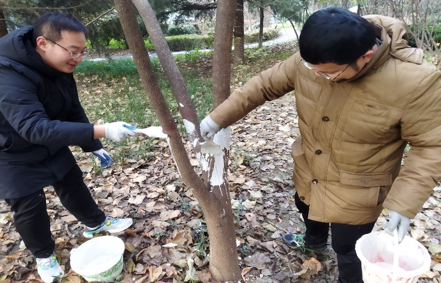研究生会生活部组织研究生参加给树木刷白漆防虫害劳育活动,本次活动在91猫先生