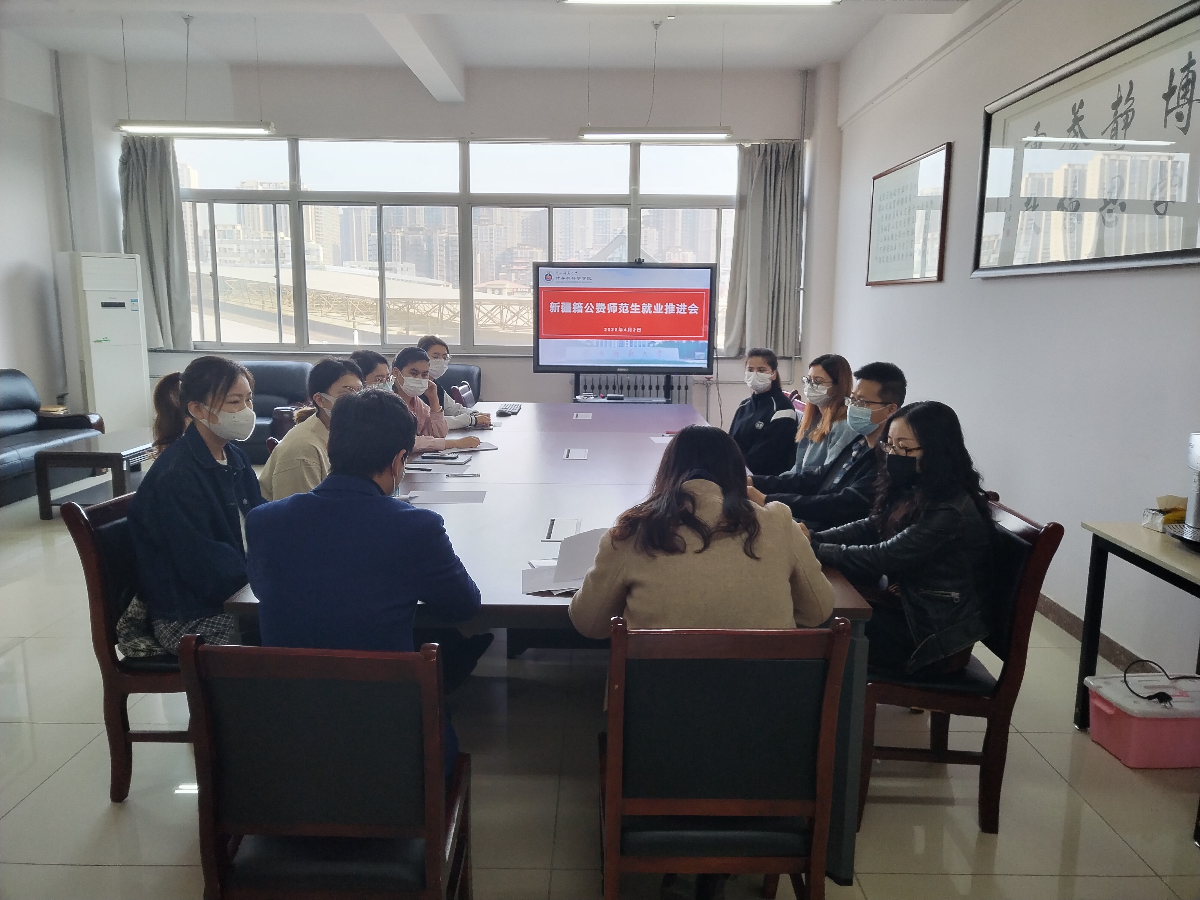 会上,7名新疆籍公费师范生分别对前期实习情况、应聘情况和存在的困难进行了逐一介绍;邵仲世和张玉梅对参会学生的简历进行了细心指导,并对同学们的专业问题进行了解答;郭康凌对公费师范生就业情况进行了介绍,结合已签约的新疆籍公费师范生求职案例,针对新疆籍公费师范生就业过程中存在的问题和困难进行了逐一分析和研判,制定“一人一策”,鼓励同学们积极联系,合理安排时间,全力就业签约。