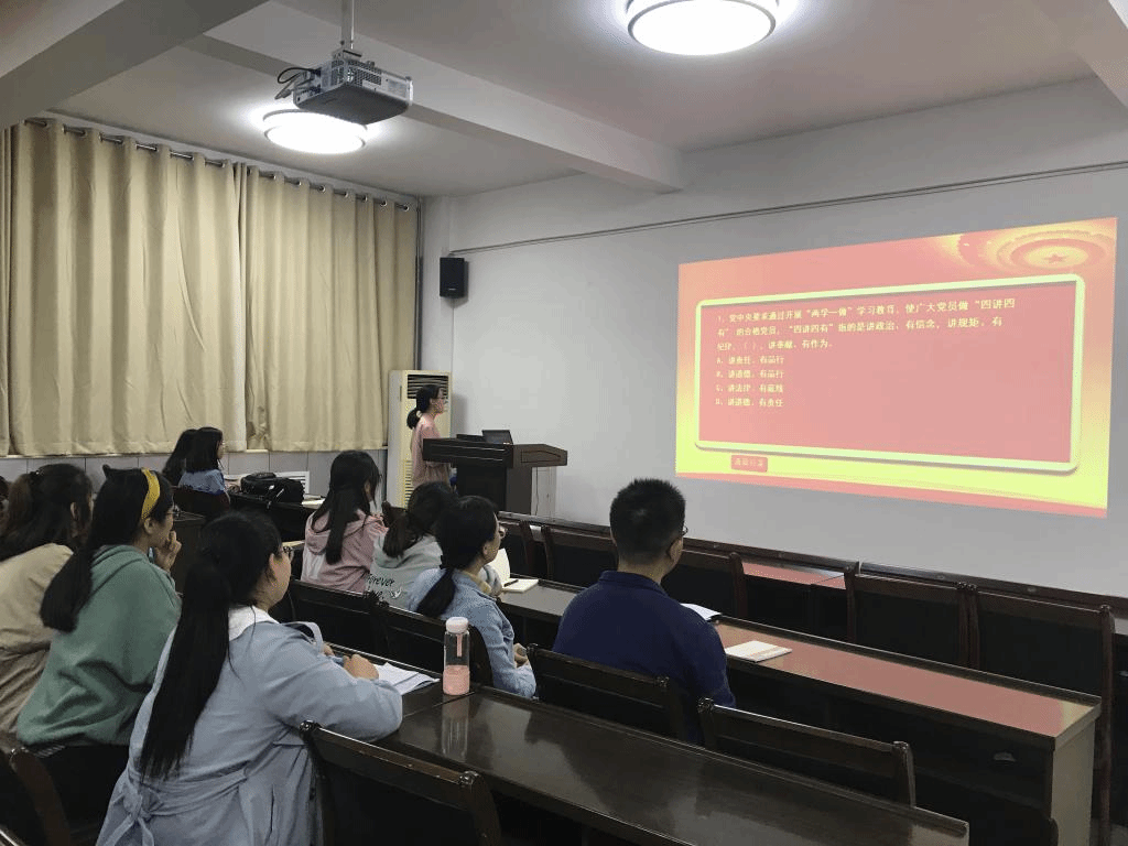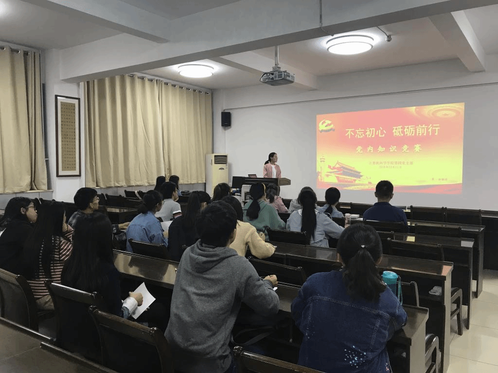 学生第四党支部于学院报告厅举办了以“不忘初心 砥砺前行”为主题的党日活动。活动形式主要为党内知识竞赛,学生第四党支部分五组,共26人参与此次活动。
