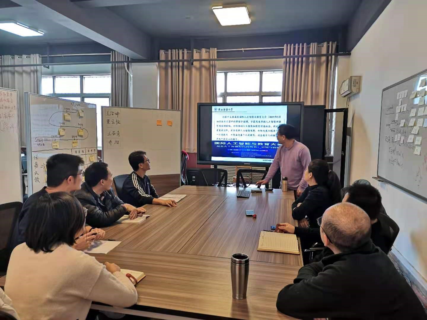 首先,裘国永老师介绍了习近平总书记在致国际人工智能与教育大会(2019年5月16日在北京召开)的贺信中的内容。习近平总书记强调,中国高度重视人工智能对教育的深刻影响,积极推动人工智能和教育的深度融合,促进教育变革创新,充分发挥人工智能优势,加快发展伴随每个人一生的教育、平等面向每个人的教育、适合每个人的教育、更加开放灵活的教育。其次,裘国永老师提出了关于未来教育和人工智能之间如何结合的各种设想。裘老师表示,充分发挥人工智能优势,积极推动“人工智能+教育”的深度融合,是当代教育变革创新的主要方向。但是发展“人工智能+教育”,不应该只追求教育技术现代化,而应该做到教育理念与制度的现代化,要基于现代化教育理念发展“人工智能+教育”。最后,支部成员纷纷谈论了自己对人工智能与教育融合的设想以及展望。