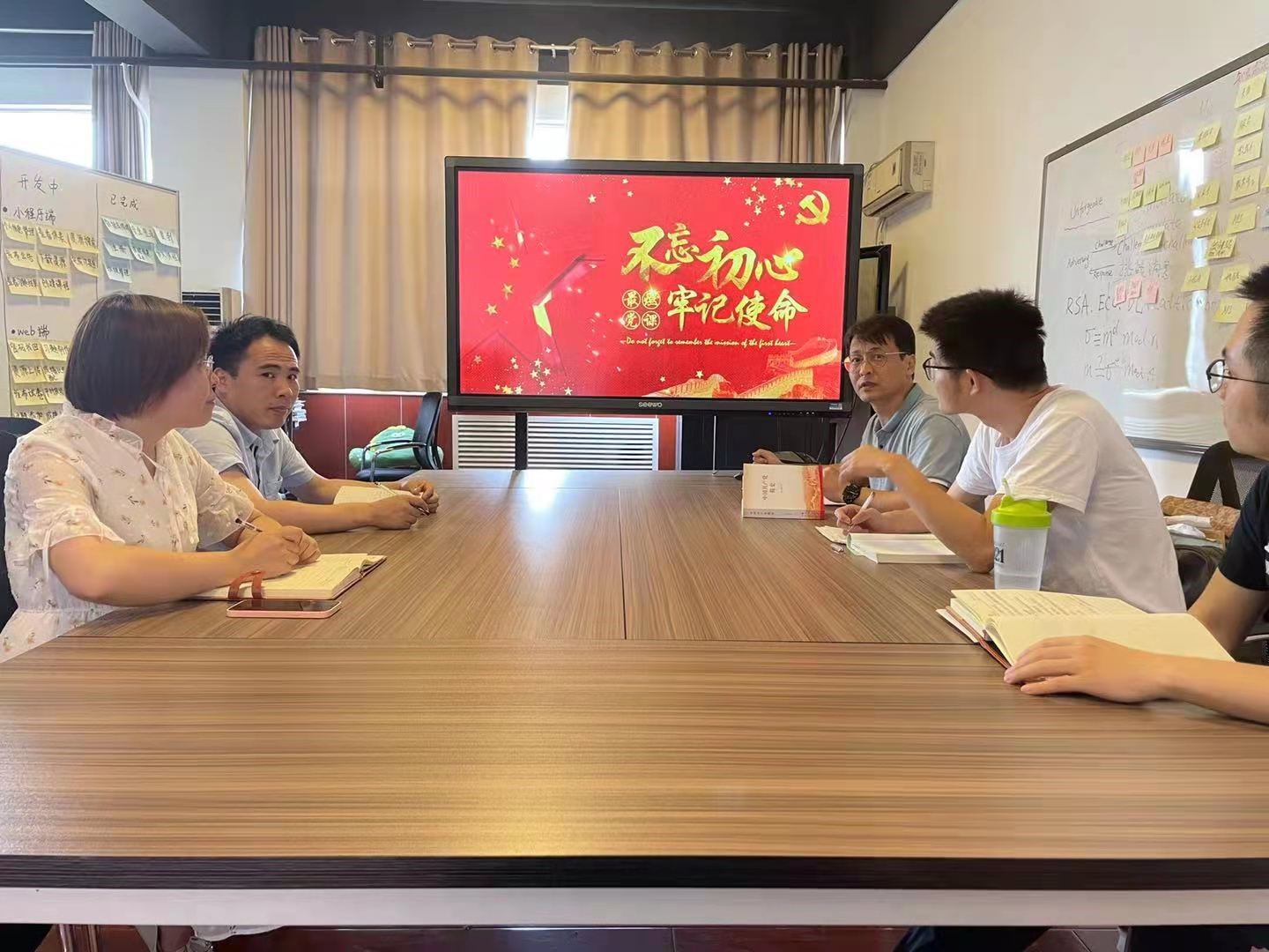 祁超书记以“不忘初心、牢记使命”为主题进行讲述,支部成员们进行了党课学习。支部成员学习了不忘初心、牢记使命相关党课内容。本次党课从回顾初心、牢记初心、践行初心三个方面进行了阐释,回顾了我们党依靠和带领全国人民,以艰苦奋斗、自力更生和顽强拼搏的精神,开辟了改革开放和社会主义现代化建设的崭新局面,介绍了中国共产党如何带领14亿人民脱贫致富的传奇经历。